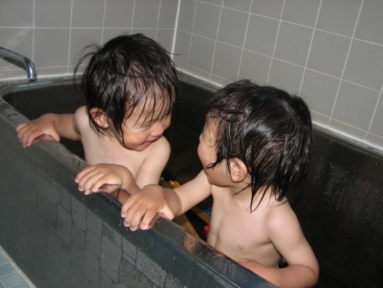 ・湯舟のお湯は子供の膝よりちょっと上くらいにする